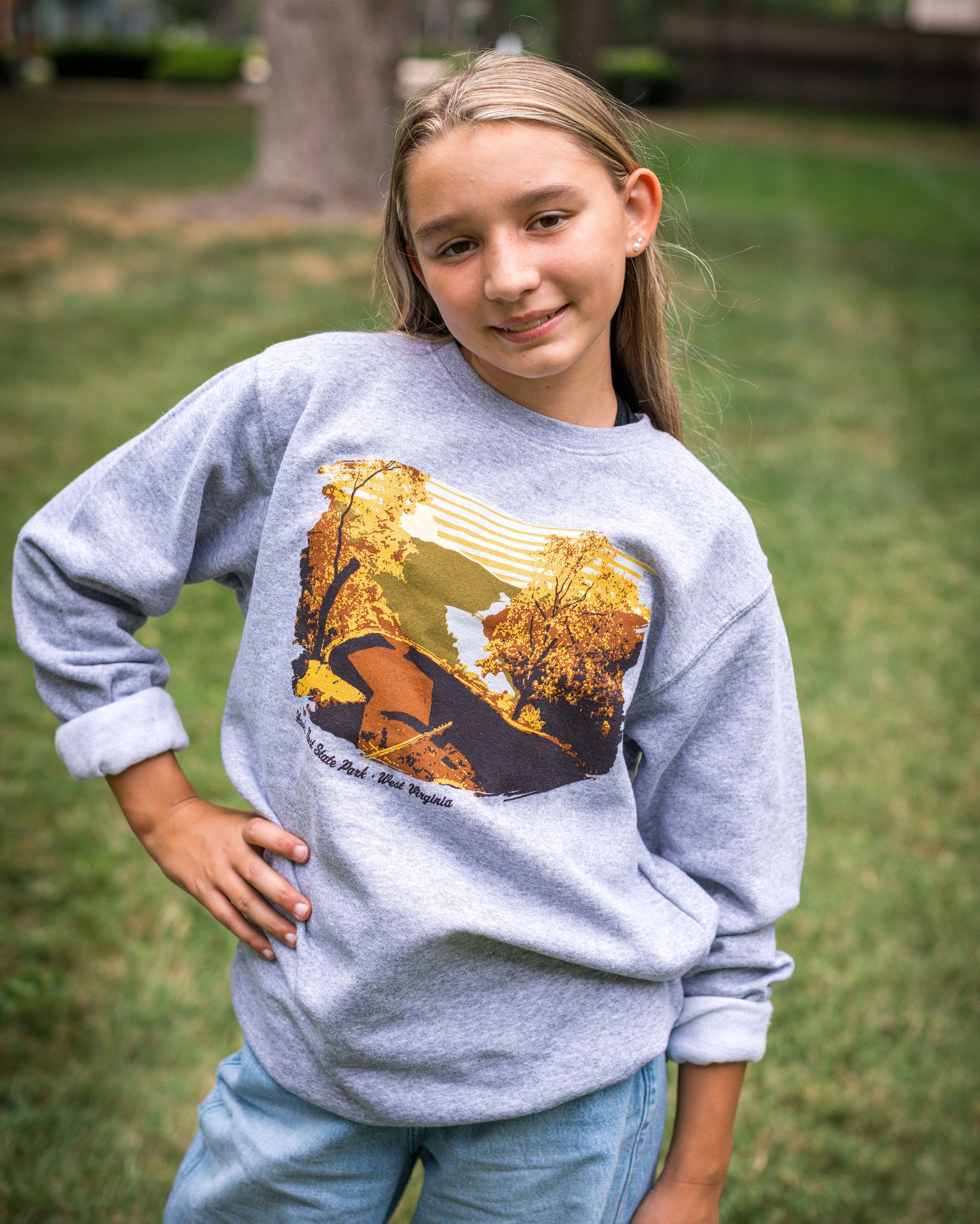 Discover the beauty of Hawks Nest State Park with this painted-picture crewneck sweatshirt! Featuring an artistic design of the park's iconic overlook and the New River gorge, it’s crafted from soft, high-quality fabric for comfort and style on cool mornings and evenings.