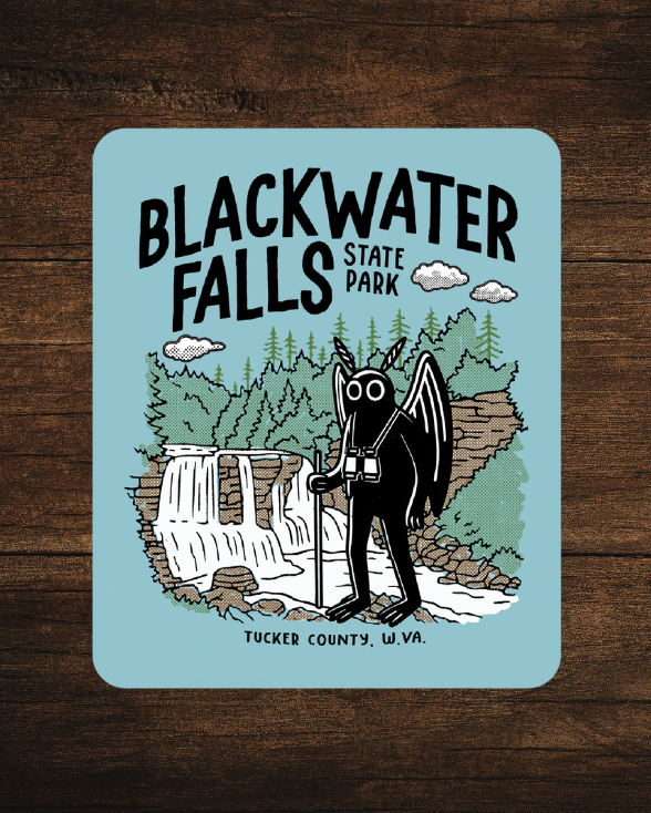 Mothman’s on the move! This spooky-fun sticker by KinShip Goods shows everyone’s favorite cryptid creeping through the stunning cliffs of Hawks Nest State Park. A must-have for Mothman fans and fall explorers who love a little mystery with their mountain views!