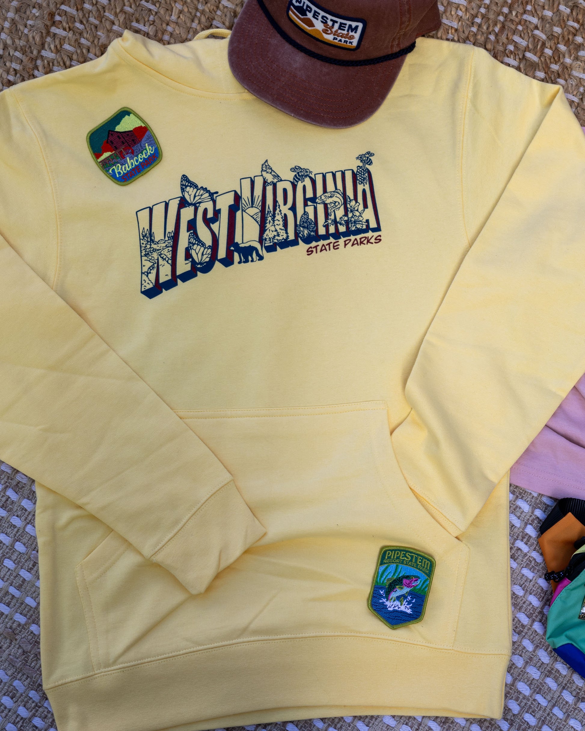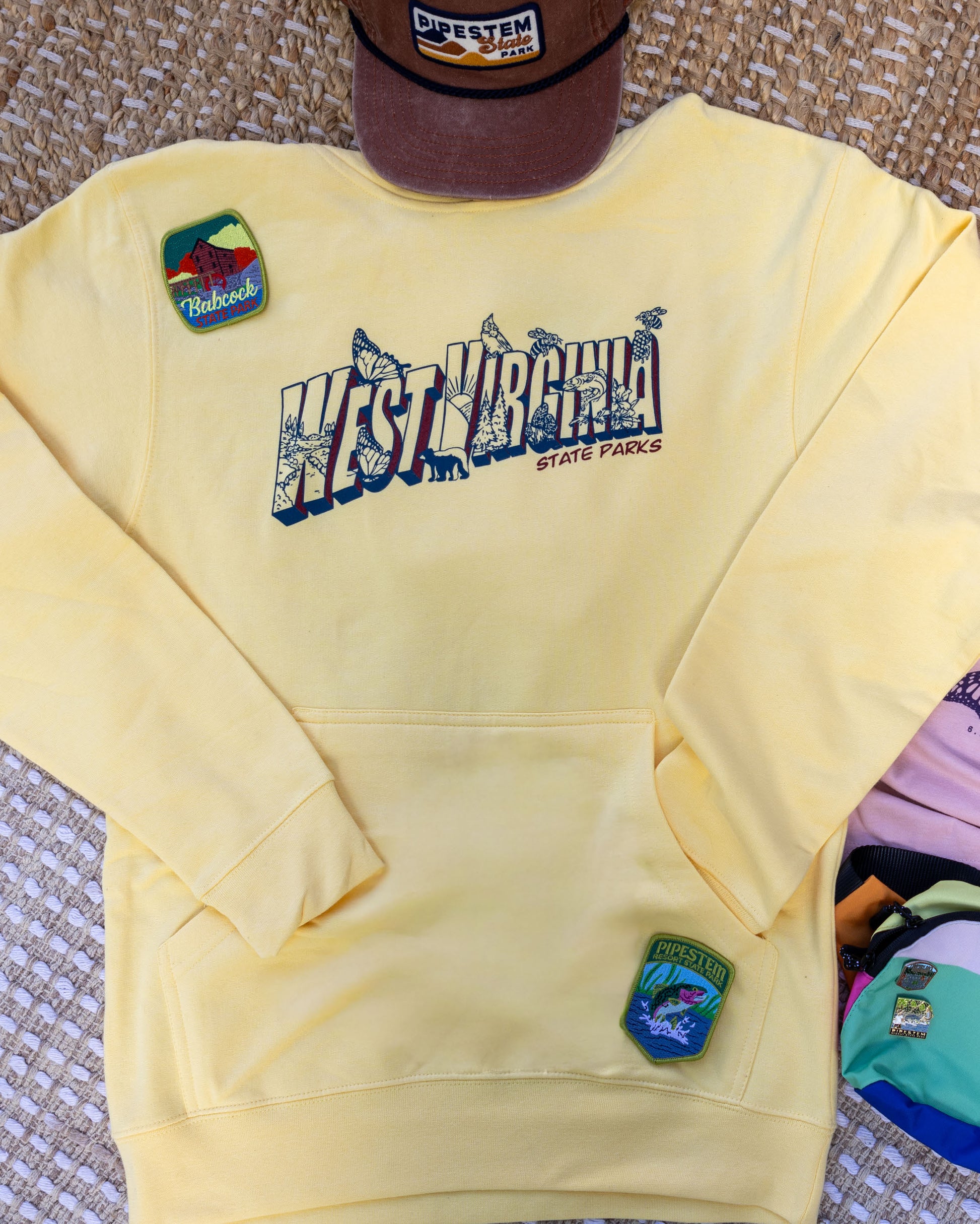 Stay cozy in vintage style with this West Virginia State Parks hoodie by Loving WV! Featuring a postcard-inspired design showcasing the state’s natural wonders, it’s the perfect blend of comfort and adventure-ready charm.